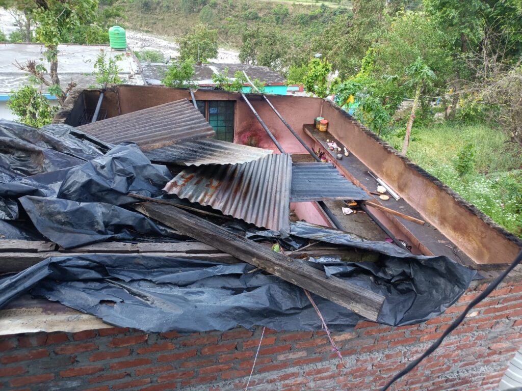 गत रात्रि को उत्तरकाशी जनपद के विभिन्न हिस्सों में बारिश के साथ तेज आंधी तूफान से कुछ देर के लिए लोगों भयभीत हो गए, तेज तूफान में डुंडा के अस्तल गांव में हीरामणि सेमवाल के किचन और गौशाला के ऊपर बिछी टीनशेड की छत उड़ गई।