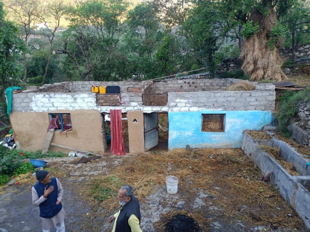 तूफान में गौशाला, आवासीय भवन और किचन की छत उड़ी टीन की छत।