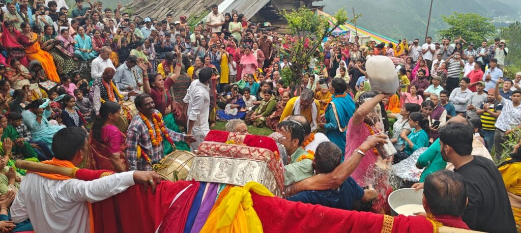 साथ ही ग्रामीणों ने आराध्य नागराजा देवता की डोली को चुनर, श्रीफल व घरों लाया भोग प्रसाद स्वरुप चढ़ाया। इस मौके पर नागराजा देवता ने देव डोली पर अवतरित होकर ग्रामीणों को सुख समृदि का आशीर्वाद दिया। डुंडा क्षेत्र के विभिन्न गांव के ग्रामीण ने बड़ी संख्या में बरसाली गांव पहुंचकर नागराजा देवता से खुशहाली का आशीर्वाद लिया। इस मौके पर यूपी के पूर्व सूचना अयुक्त अरविंद बिष्ट, लोकेंद्र बिष्ट, देशराज बिष्ट, कुलदीप बिष्ट, समशेर बिष्ट , जयराज बिष्ट, रणवीर बिष्ट, पंकज बिष्ट, सुरेंद्र लाल सहित बड़ी संख्या में ग्रामीण मौजूद रहे।