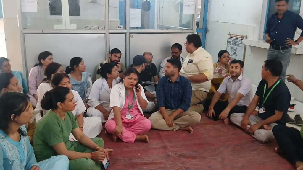 इसके विरोध में मंगलवार सुबह डॉक्टर व नर्सिंग स्टॉफ एकत्रित हुए। वहां पर उन्होंने मरीज के तीमारदार पर कानूनी कार्रवाई करने की मांग को लेकर धरना दिया। उनका कहना है कि लगातार डॉक्टरों और मेडिकल कर्मियों से अभद्रता की जाती है। इसलिए सख्त कार्रवाई की जानी चाहिए। वहीं डॉक्टरों और नर्सिंग स्टाफ के धरने के कारण दूरस्थ क्षेत्रों सहित अस्पताल में भर्ती मरीजों को भारी परेशानी का सामना करना पड़ा। मरीज दिन भर उपचार के लिए इधर उधर भटकते रहे। वहीं सूचना मिलने पर एसडीएम शालिनी नेगी, नगर कोतवाल भावना कैंथोला मौके पर पहुंचे। उन्होंने कहा कि अभद्रता करने वाले लोगों पर मुकदमा दर्ज कर जांच शुरू कर दी गई है।लेकिन उसके बाद डॉक्टर धरने पर डटे रहे। वहीं इसी बीच सीएमएस कार्यालय में एसडीएम और डॉक्टरों की वार्ता चल रही थी।